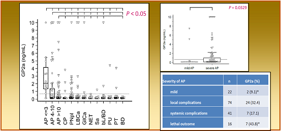 马格德堡大学医院大量的临床研究表明,GP2在急性胰腺炎患者与慢性胰腺炎患者 、胰腺癌患者 、非胰腺类疾病患者中的表达有着显著差异,可明显区分AP与其他胰腺疾病与非胰腺疾病。